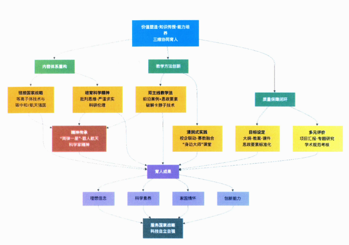 《等离子体与原子分子物理前沿进展》紧扣“科技自立自强”战略,将可控核聚变、空间推进等前沿技术与“两弹一星”精神结合,通过双主线教学与浸润式实践,塑造学生严谨求实的科学精神与科技报国志向。