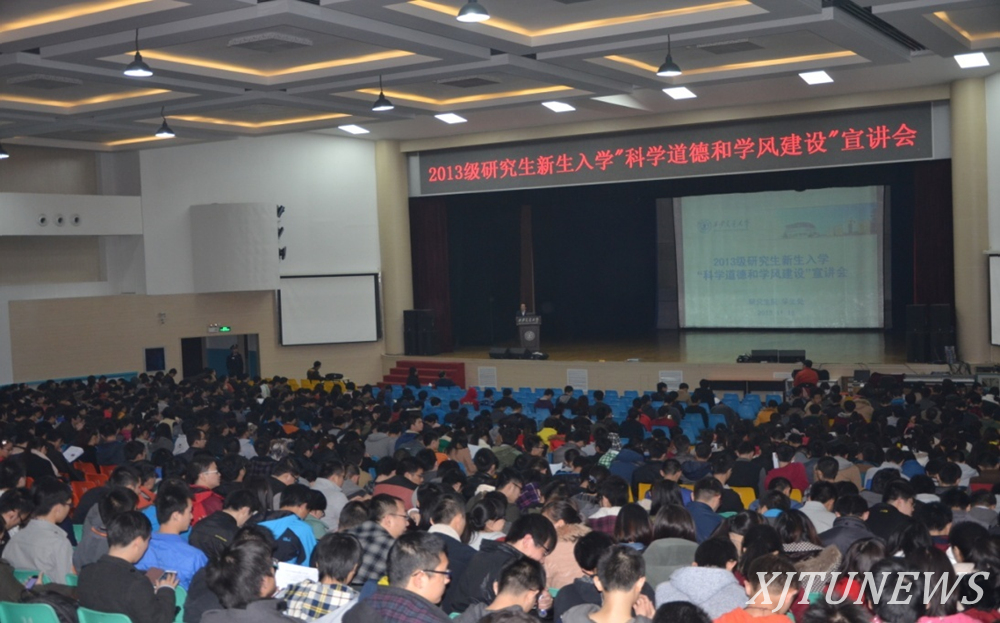 11月18日、19日下午,由研究生院、学生处共同组织举办的2013级研究生新生“科学道德和学风建设”宣讲教育报告会在兴庆校区宪梓堂举行。报告会邀请了马克思主义学院院长王宏波、研究生院副院长李秀兵作主题报告。学生处副处长彭学院主持报告会,各学院(中心)主管研究生工作负责人、部分教师及2013年全体新入学硕士研究生3000余人参加报告会