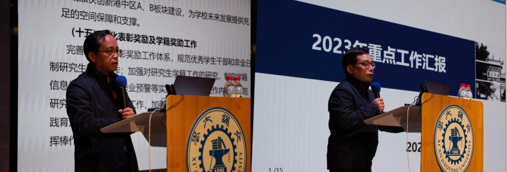会上,研究生院副院长龙建纲、教务处处长王秋旺分别围绕2023年学校研究生院、本科生院重点工作作了汇报和解读。