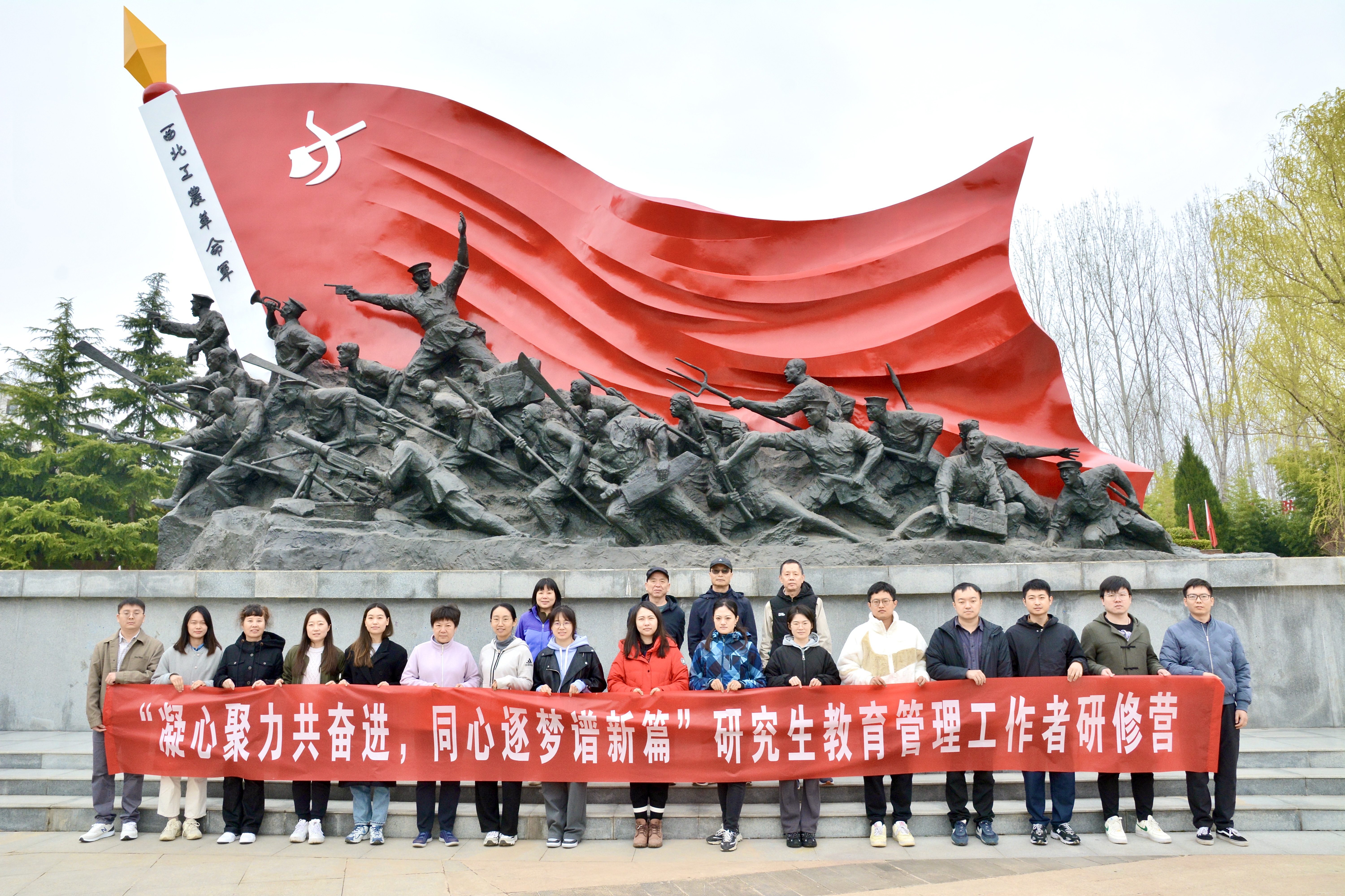 为深入学习贯彻党的二十大精神,加强研究生教育管理队伍建设,厚植研究生教育工作者家国情怀,促进研究生教育管理工作者能力提升,强化使命担当,忠实履职尽责,加强交流,坚定信心,全面提高研究生人才培养质量,3月18日,研究生院组织开展“凝心聚力共奋进,同心逐梦谱新篇”研究生教育管理工作者研修营活动。本次研修营活动以“理论学习+素质拓展”形式开展,由研究生院副院长张四聪带队,研究生院各部门代表、研究生教务员及辅导员代表等20余人参加。