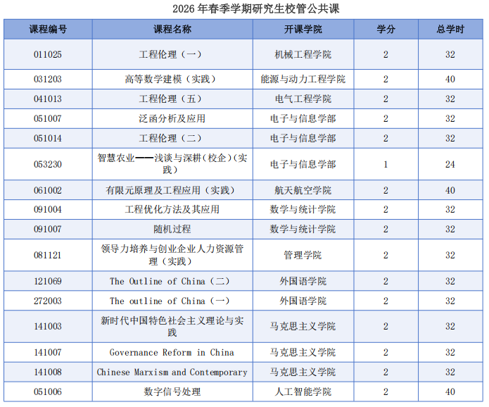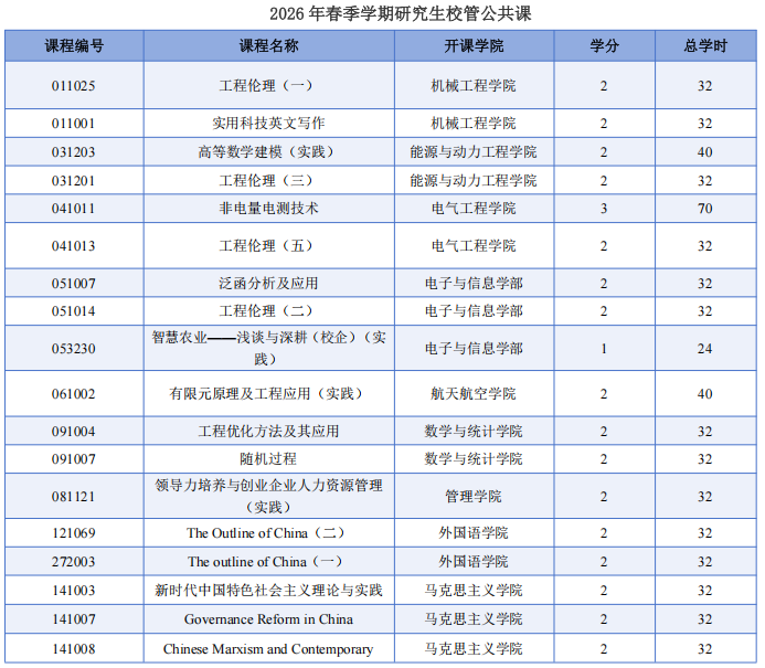 根据学校教学管理安排,现启动2026年春季学期研究生选课工作。具体事项安排如下: