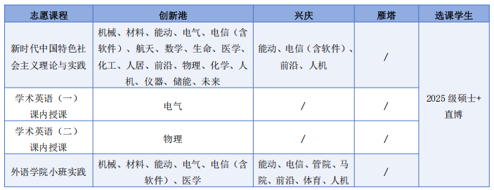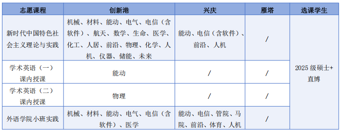 3.本次志愿填报课程及涉及学院如下(未列出的已于2025年秋季学期安排完毕)