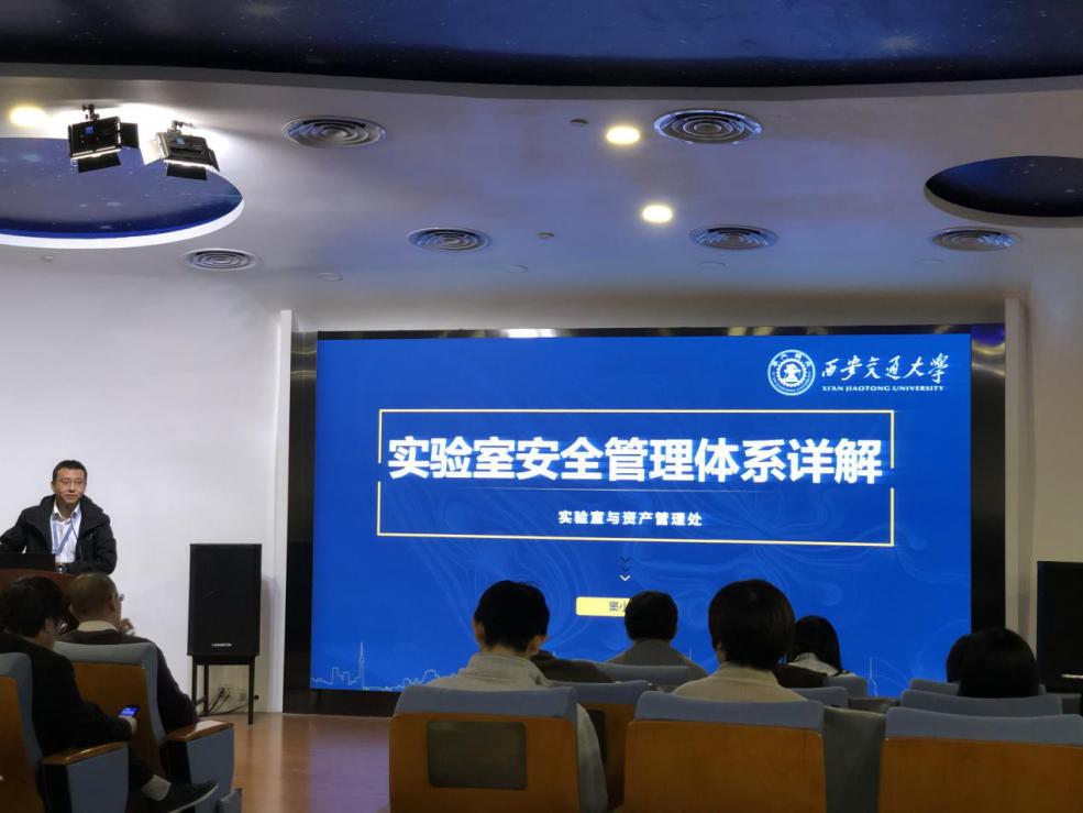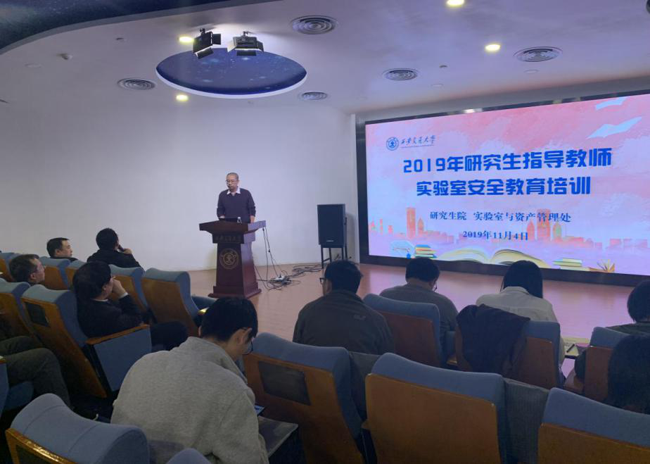 11月4日下午,研究生院联合实验室与资产管理处共同举办了2019年研究生指导教师实验室安全教育培训,特邀教育部科技发展中心实验室安全专家组郑元锁教授和实验室与西安交通大学资产管理处副处长窦小刚开展实验室安全管理意识教育培训。本次活动在钱学森图书馆星空报告厅举行,来自西安交通大学国家级与省部级科研基地的50余名研究生指导教师代表参加培训。研究生院学位办主任梁栋主持会议。