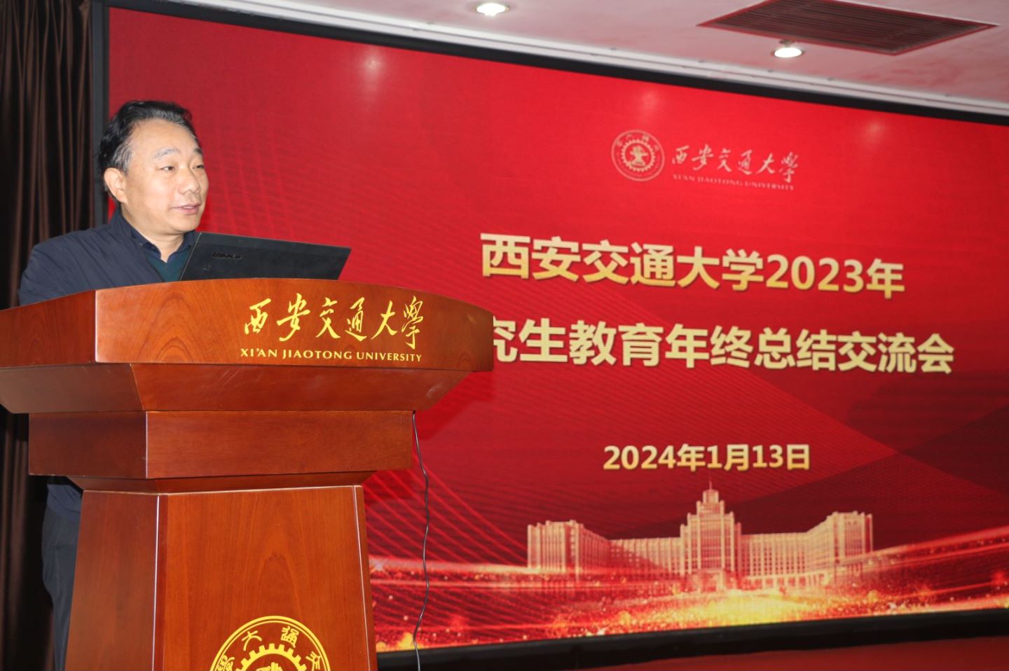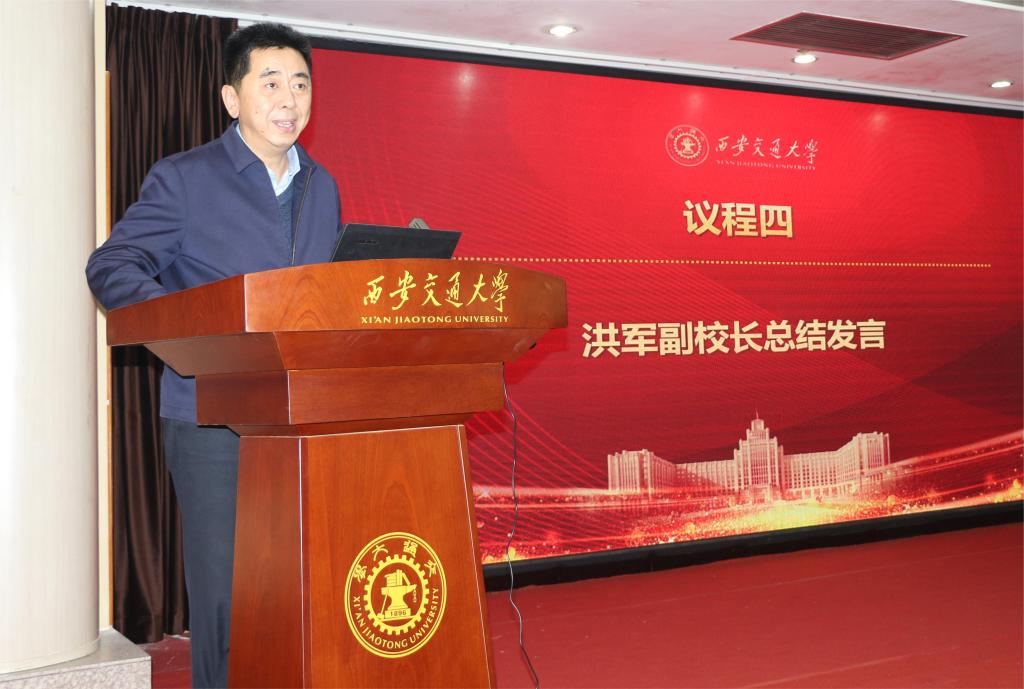 1月13日,西安交大2023年度研究生教育年终总结交流会在南洋大酒店国际会议厅举办,西安交通大学党委常委、副校长洪军,第三届研究生教育教学质量专家督导组代表,图书馆、教学科研单位相关负责人,研究生教学秘书、研究生院全体人员共170余人参加会议。会议由研究生院常务副院长吴宏春主持。