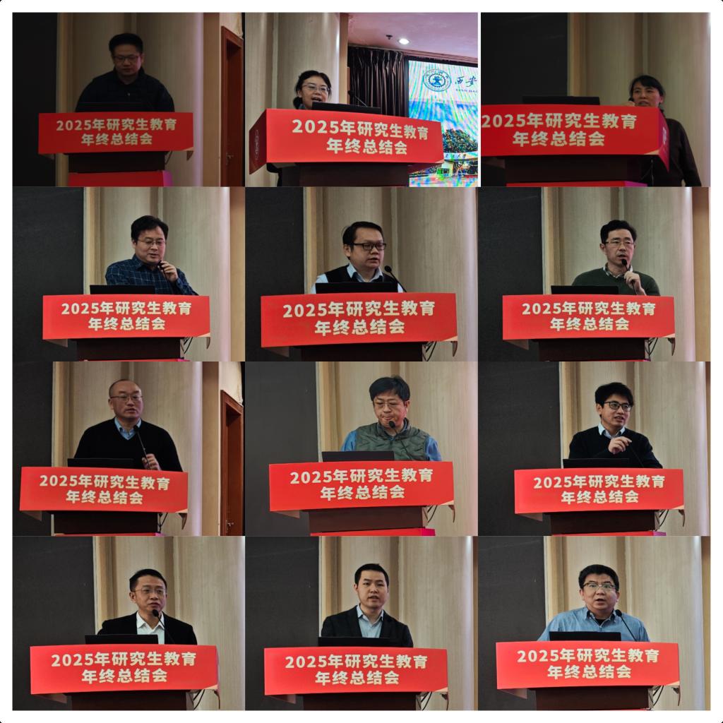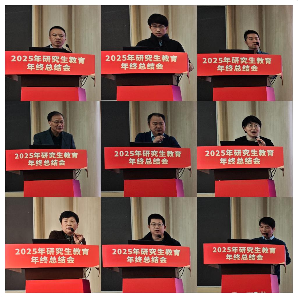 会上,研究生院招生办公室、培养办公室、学位办公室、党委研工部四个管理服务单位分别进行2025年终总结及2026年工作计划汇报。2025年,学校研究生招生建立了“主动对接、精准分流、高效锁定”为核心的优质生源提升工程,系统构建“项目制选拔、分类评价、精准画像”的卓越人才选拔矩阵,建强“学校主导、学院主体、学科主唱”的三级宣传梯队,圆满完成研究生各项招生考试工作;建设了“技术赋能、数据驱动、智慧管理”的研究生教学体系,健全“破壁垒、促融合、全周期”的五育体系,国内外大赛获奖研究生人次数等5项显著增长或保持全国/全省第一;实现了博士点一级学科的全覆盖,精耕导师遴选培优机制,构建“校-院”两级导师培训体系,强化导师队伍专业能力建设,建立“校-省-国家”三级论文抽检制度,着力提升授位质量;深入了解数智时代研究生新学情,开展公寓巡查,探索校园安全治理新路径,深化校医协作,激发队伍新动能,“百个研究生样板党支部”与“百名研究生党员标兵”创建成果显著,高质量完成研究生奖助金评定发放工作。
