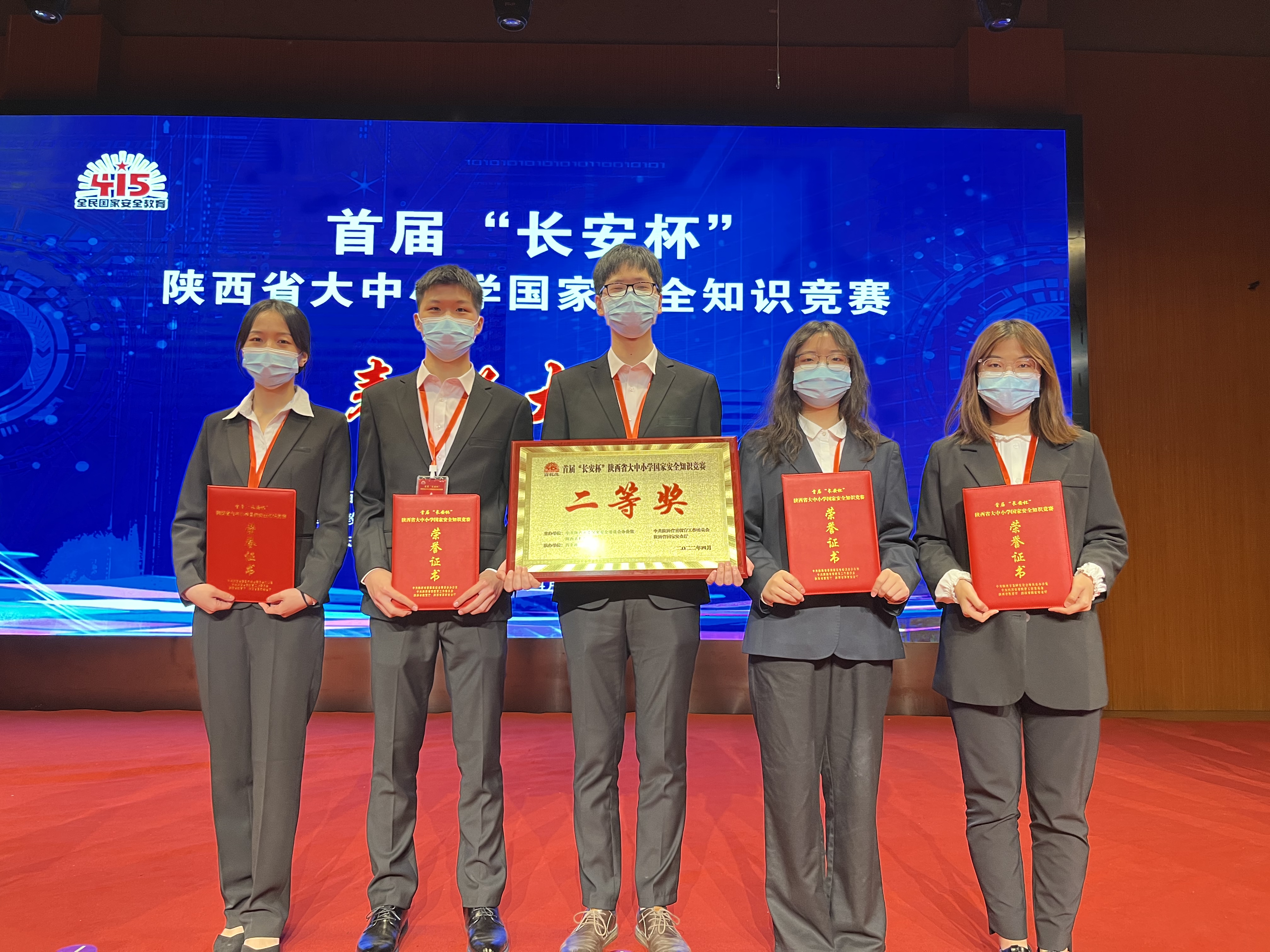 近日,西安交大积极组织学生参加由中共陕西省委国家安全委员会办公室、中共陕西省委教育工作委员会、陕西省教育厅、陕西省国家安全厅主办的首届“长安杯”陕西省大中小学国家安全知识竞赛活动,经初赛网络答题、复赛集中笔试、决赛现场竞答三个环节,最终获二等奖,马克思主义学院硕士研究生杨心怡,外国语学院硕士研究生李林,电信学部、南洋书院本科生侯雪晗和机械学院、文治书院本科生吕钊宇获个人二等奖。