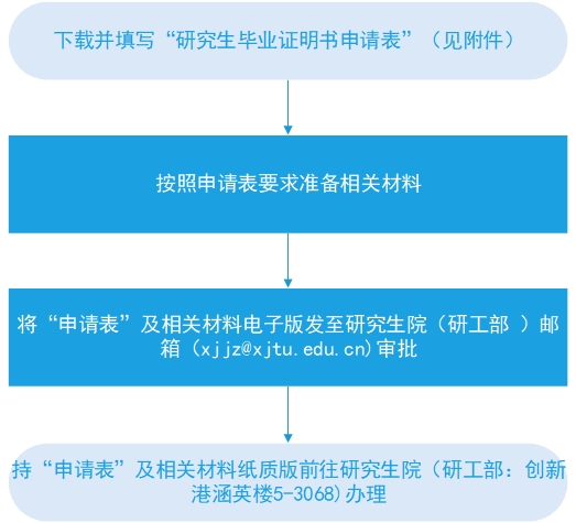 不慎丢失学历证书的我校毕业研究生,可按照以下流程办理研究生毕业证明书,毕业证明书与原毕业证书具有同等效力。如需他人代办,请出具委托书(见附件)。